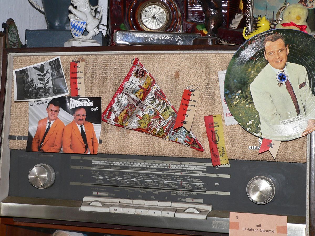 Er lernte als Schneider und Modellmacher und sattelte schließlich eine Fortbildung zum Bekleidungstechniker drauf. Den Unterschied zwischen einem Frack und einem Bauerngehrock kann er aus dem Effeff erklären. Am Ende seines beruflichen Werdegangs übernahm er seiner Tochter zuliebe eine ganz besondere Aufgabe: Klosterschneider bei den Deutschen Schwestern von Assisi. Das einzige Kind der Braunreuthers war dort nach dem Studium der religiösen Volkskunde mitten in ihrer Promotion zum Thema „Schutzengel“ in den Klarissinnenorden eingetreten. Die Leiterin der Nähstube war ohne Nachfolgerin verstorben. Ein Ausbilder wurde gesucht. „Ich musste alle Register meines Könnens ziehen, um Gewänder zu fertigen, denen nicht anzusehen war, dass sie wegen Stoffmangels zusammengestückelt waren“, berichtet der „Entwicklungshelfer“ von seinen insgesamt 37 Einsätzen in Italien. Der zuständige Bischof habe ihm eine Sondererlaubnis erteilt, um unter Nonnen tätig zu sein, und ihm auch einmal bei der Arbeit über die Schulter geschaut. Strenge Regeln würden in jenem Kloster herrschen, merkt der mit einer Katholikin verheiratete evangelische Christ noch an. Kein Wort darüber, ob er dort seiner Lieblingsmusik frönen durfte. Er ist großer Fan von Elvis Presley. Die „Local Heroes“ sind für ihn die Mitglieder der „Mambo“ aus Zeil. Schallplatten und Autogrammkarten fehlen freilich nicht im Notalgiemuseum. Und Abspielgeräte und Radios gibt es wie vieles andere zigfach.