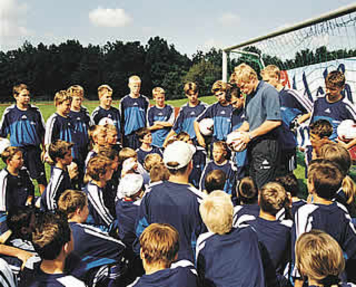 / Nationaltorhüter Oliver Kahn stellt sich den Fragen von Nachwuchskickern